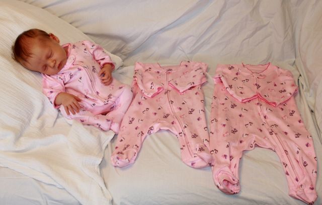 We went back to the hospital for another blood draw. It's a bad sign when the hospital receptionist start to recognize you. We didn't have to go to the doctor today. The called us with the results. Her number didn't really change, 16.2 to 16. Maya and I had a rough day with feedings. When we would try she would scream, a horrible high pitched cry and stick her tongue to the roof of her mouth. I couldn't really calm her down or get her to latch on. We would both sit there and cry. This got worse in the evening. Derek called the oncall doctor that evening for help. She suggested trying to feed her more often as she might be too hungry and thus too frustrated. She also suggested we try a bottle at the end of a feed if she didn't eat well. The would help make her less frustrated at the next feed. We tried all of this and it seemed to help a little. My advisor brought over some preemie sleepers, her first clothes that fit. As soon as she is off of the billiblanket she will be able wear them. We again spent the night in the living room.